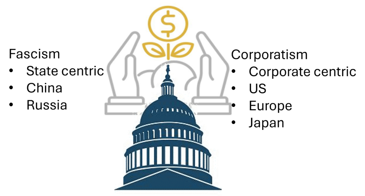 Thesis: Powerful elites control states to preserve and exercise their power and maintain a high quality of life. They use a blend of fascism and corporatism to maintain this control, depending on the state’s socio-cultural framework.